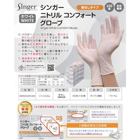 宇都宮製作(株) シンガー シンガーニトリル手袋コンフォート(100枚入)W M