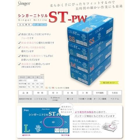 NBR0451PWBBM 宇都宮製作(株) シンガー ニトリル手袋STPW粉付(100枚入)M