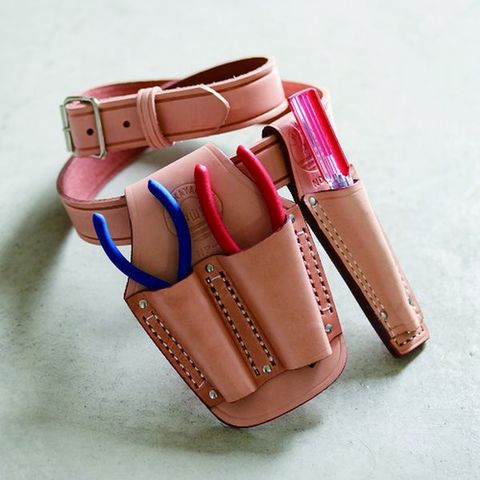 ・高品質で丈夫な牛ヌメ革を使用し、型押し加工していますので使い込むほどに味が出て工具に馴染みます。・高級牛ヌメ革にステンレスの鋲を使用していますので、工具が錆びにくく耐久性・耐摩耗性に優れています。