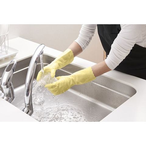 ・色:ミモザイエロー・サイズ:M・全長(cm):30・手のひら周り(cm):20・中指長さ(cm):7.7・すべり止め:あり・食品衛生法:なし
