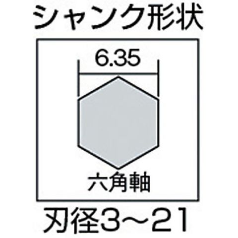 ・刃径(mm):10.5・全長(mm):185・シャンク形状:六角軸・シャンク径(mm):6.35・溝長(mm):120・適合機種:電気ドリル・インパクトドライバー対応(刃径21mm以下)