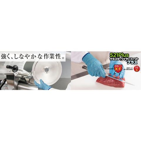 NO521PLUSM 耐切創手袋 No521Plus ケミスターワイヤーフィットPlus ブルー Mサイズ