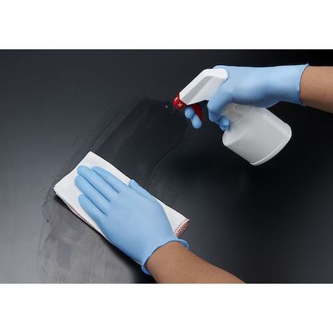 ・厚み約0.06mm、衛生的な粉なし(パウダーフリー)タイプの使い捨てニトリルゴム手袋(ニトリル手袋)。・指先滑り止め加工で細かな凹凸をつけた使い捨て手袋(ディスポーザブル)。・手袋の内面を滑りやすくしており、ぬぎはめスムーズ。・ニトリルゴム製のため、油に対して耐久性があり、丈夫。・食品衛生法適合で、調理、料理にも使える。・防水手袋として、食器洗い時など、湿疹、手荒れ(手の荒れ)、肌荒れの防止にも。掃除・洗車など、作業用手袋(作業手袋)としても使用可能。幅広く使えるニトリルグローブ。