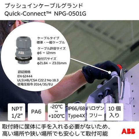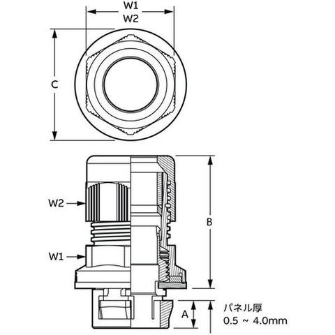 ・極数:1・サイズ×極数:NPG1/2・色:グレー・適合電線範囲:6~12φmm・ねじタイプ:NPTねじ・ねじ径:20.2-2.4・保護等級:IP66 - IP68 (5 bar 30分)・使用温度範囲(℃):-20~+100・A(mm):10・B(mm):39.2・C(mm):30.5・W1(mm):24 ・W2(mm):24 ・サイズ:NPG1/2・適合電線範囲(mm):6~12φ