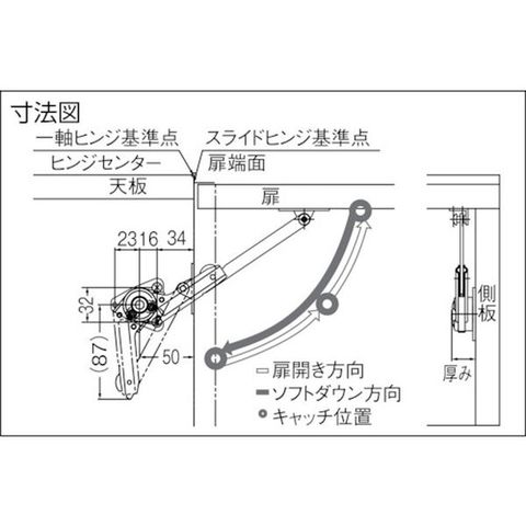 ・扉の角度を2段階で保持することができます。・取り付け位置により、全開時の角度が80°、90°、100°になります。・ダンパー機構付でゆるやかに扉を閉められます。