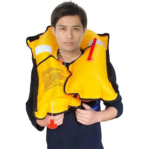 ・万一、自動膨張システムが作動しなかった時は口から呼気で膨張可能。・本製品は主として防災/レジャー用途としてのライフジャケットで、桜マークの型式承認品ではありません。