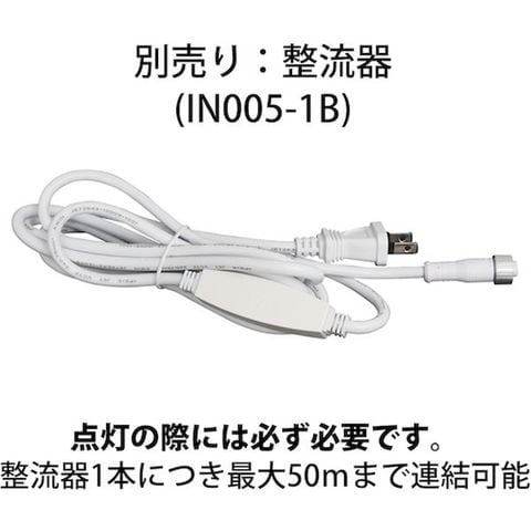 ・※点灯の際に必ず別売りの整流器(IN005-1B)が必要です。・日亜化学製LEDを使用しており品質安定性が高い製品です。・従来のPVCに比べ高品質な透明チューブを使用し、紫外線による変質、変色、劣化を抑え、耐候性をアップしました。・最大連結は整流器1本につき最大30mまでになります。・出力側の末端には、必ずエンドキャップを装着ください。