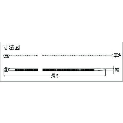 ・色:白・幅(mm):3.5・長さ(mm):200・厚さ(mm):1.3・最大結束径(mm):55・引張強度(N):280・最小結束径(mm):4
