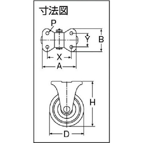 ・車輪径D(mm):100・タイプ:固定式・許容荷重(daN):176・許容荷重(kgf):180・車輪幅(mm):32・取付高H(mm):144・取付座A(mm):115・取付座B(mm):80・取付ピッチX(mm):75~80・取付ピッチY(mm):40~45・取付穴径P(mm):10.5・許容荷重(N):1800