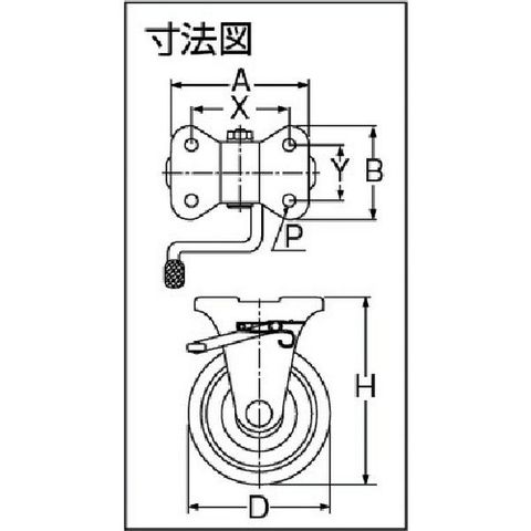・車輪径D(mm):200・タイプ:固定式(ストッパー付)・許容荷重(daN):392・許容荷重(kgf):400・車輪幅(mm):42・取付高H(mm):250・取付座A(mm):155・取付座B(mm):102・取付ピッチX(mm):103~113・取付ピッチY(mm):54~64・取付穴径P(mm):11.0・許容荷重(N):4000