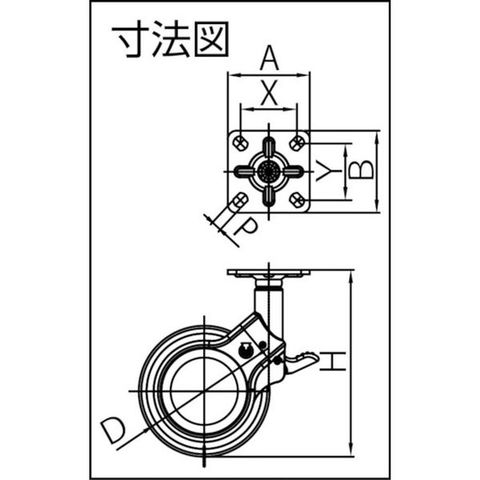・車輪径D(mm):60・タイプ:自在式(ストッパー付)・許容荷重(daN):39.2・許容荷重(kgf):40・車輪幅(mm):13・取付高H(mm):94・取付座A(mm):47・取付座B(mm):47・取付ピッチX(mm):32.5・取付ピッチY(mm):32.5・取付穴径P(mm):6.2・許容荷重(N):400