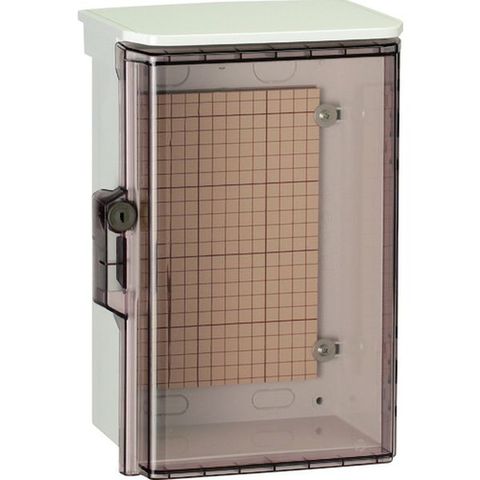 ・シリンダー錠N200番キーによる施錠が可能です。・配線用ノックアウト付です。・耐候性の良いAAS樹脂を採用し、日ざしによる変色や機械強度の低下が少なく、屋外使用に適しています。・取っ手部とキー部が一体のロック構造により、機器収納スペースが広く取れます。・扉が透明のため内部機器の監視に適しています。