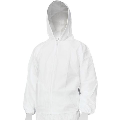 ・動きやすいセパレートタイプです。・軽量で柔軟性に富んだ生地は高い通気性と優れた防じん性能を発揮します。・便利なポケット付きです。・フード、袖口、裾部分はゴム入りで異物の侵入を防ぎます。・処分しやすいプラスチック製ファスナーを採用しています。