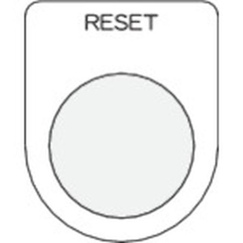 ・表示内容:RESET・文字色:黒・縦(mm):45・横(mm):35・厚さ(mm):2・穴径(mm):25.5