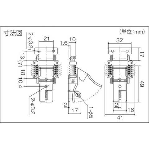 ・本体取付穴寸法(mm):3.2・受け穴寸法(mm):3.2・鍵穴径(mm):5