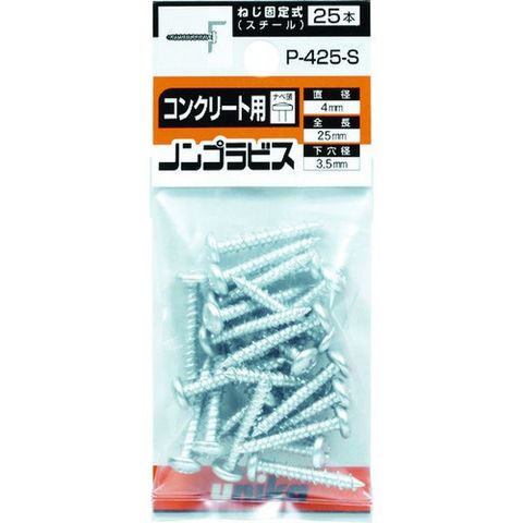 ・呼び径d(mm):4・下穴径(mm):3.5・埋込深さ(mm):30・引張最大荷重(kN):2.5・穿孔深さ(mm):32・長さ(mm):32・適合ドライバー:プラスNo.2・ヘッド形状:ナベ頭・適合材:コンクリート、ブロック