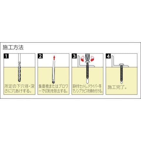 ・プラグを使用せず下穴のみでコンクリートに使用でき、普通のドライバーで簡単に取り付け可能です。