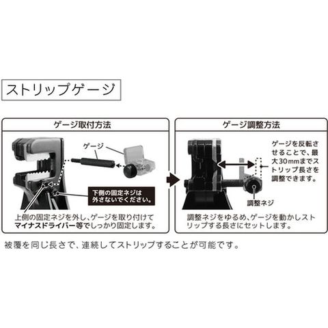 ・ワンアクションで、精密にストリップできるワイヤーストリッパーです。・高精度加工のストリップ刃により、芯線を傷つけず、精度の高いストリップができます。・握るだけで簡単にストリップでき、使用時の負担を軽減します。・ストリップゲージ付でストリップする被覆の長さを設定できます。