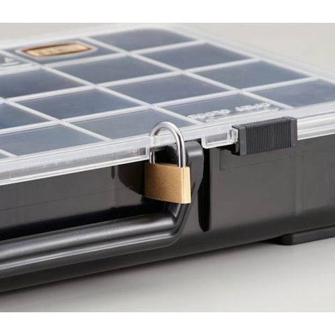 ・色:ブラック/クリア・外形寸法(mm)間口:375・外形寸法(mm)奥行:230・外形寸法(mm)高さ:71・有効内寸(mm)間口:345・有効内寸(mm)奥行:200・有効内寸(mm)高さ:64・南京錠(別売):取付可(φ4mm)