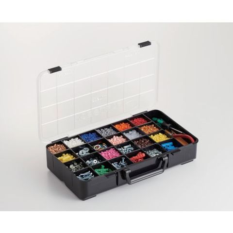 ・仕切りの組み替え(大・小)が自由自在です。・収納部品が取り出しやすく底部がアールになっています。・外から中身が見えます。・本体、中皿ともABS樹脂製で丈夫です。