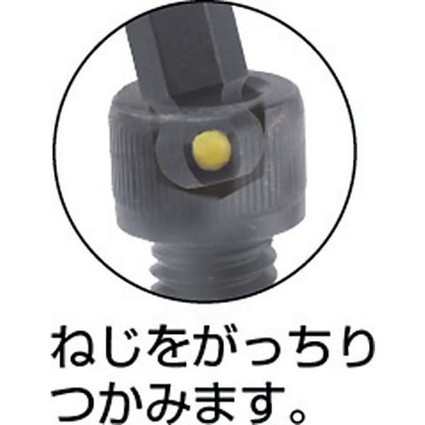 ・ボールポイントの側面に埋め込んだ特殊ナイロン樹脂がねじをガッチリつかみます。狭い所や奥まった箇所でねじを落としたくない場面で威力を発揮します。・プロホールドボタンは、全サイズに埋め込まれています。・全サイズにねじつかみ機能がついています(1.5・2・2.5・3・4・5・6・8・10mm)。・ボールポイント面に特殊ナイロン樹脂(非磁性)を埋め込んでいます。・プロガード加工[[TM上]]ボンダスが開発した黒染め加工処理は、表面はドライで手にべとつきません。