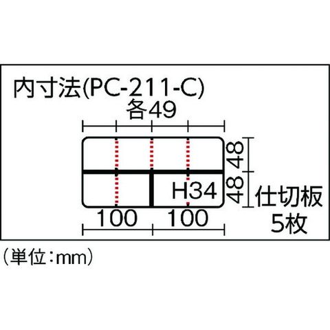 ・色:クリア・外形寸法(mm)間口:210・外形寸法(mm)奥行:110・外形寸法(mm)高さ:38・有効内寸(mm)間口:200・有効内寸(mm)奥行:96・有効内寸(mm)高さ:34・仕切板(枚):5・タイプ:固定・可動仕切