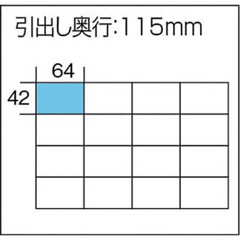 ・間口(mm):295・奥行(mm):130・高さ(mm):200・最大積載量(kg/台):3.2・色:ブラック・引出し:4列4段・引出し内寸(mm)間口:64・引出し内寸(mm)奥行:114・引出し内寸(mm)高さ:40