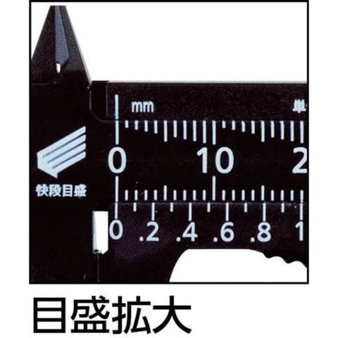 ・快段目盛りで読み取りが容易です。・細かな数値が不要な時に便利な1mm読みバーニヤ付です。・付属シールで目盛りをカスタマイズできます。・用途に合わせて目盛をカスタマイズできる白無地シ-ル付です。・収納、携帯に便利な、マグネット&ストラップ穴付です。