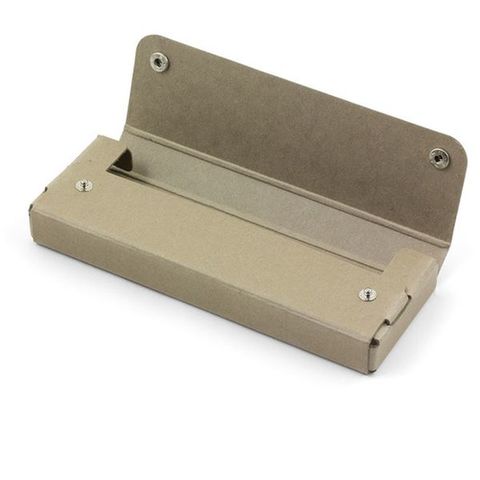 ・古紙とフレッシュパルプを原料とした特殊紙を使用したペンケースです。・フタは左右のホックで開閉します。・撥水加工を表面に施しており、少々の水は弾きますので、うっかり水がついたときもサッと拭き取れば問題ありません。