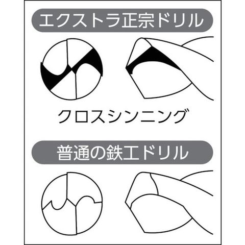 ・先端部にクロスシンニング加工を施してあるので、ポンチ不要で、食い込みが早く切れ味が抜群です。