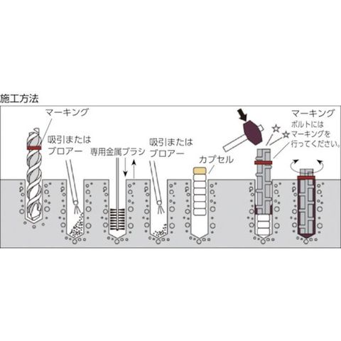 ・厚生労働省が定めるシックハウスの原因となるVOC13品目を原材料に使用しない、健康にも環境にも配慮した接着系アンカーです。施工時に不快となるスチレン臭は全くしません。・ハンマーでたたきこむだけで簡単に施工できます。・曲げ鉄筋などの加工筋の施工が簡単にできます。・ハンマーなどで容易に施工できます。・曲げ鉄筋(L型・J型・フック型など)の施工ができます。
