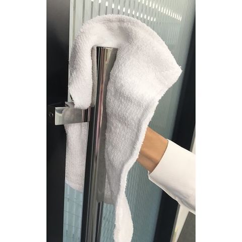 ・純綿 100%タオル地です。(2枚折縫製加工)・洗濯して再利用も可能です。・美しい仕立てのバージンタオル地です。・耐久性に優れた2枚折縫製加工だからあらゆる作業に最適です。