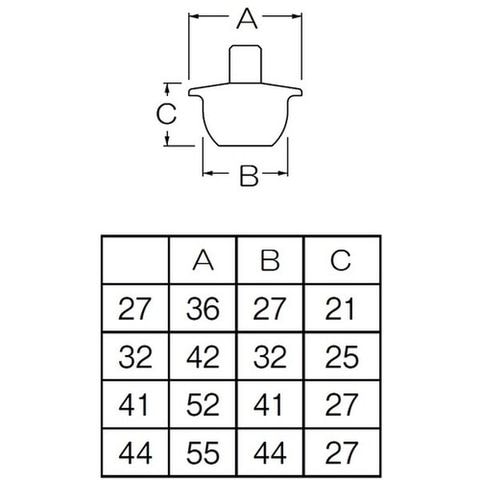 ・長さ(mm):21・高さ(mm):21・A(mm):36・B(mm):27・C(mm):21