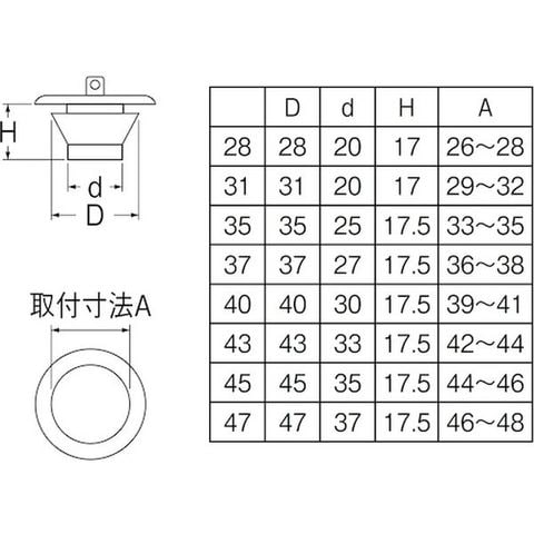 ・長さ(mm):670・許容排水口径(mm):34~37・鎖玉径(mm):4.5・D(mm):37・d(mm):27・H(mm):17.5