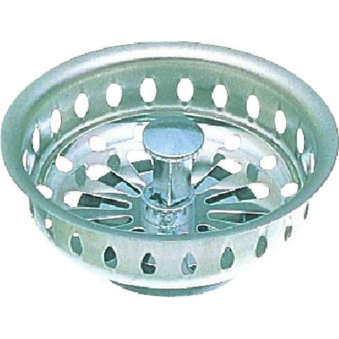 ・ステンレス流し台の排水栓に使用するゴミ受けです。・ツマミを回してフタをすれば、一時的に水溜めが可能です。