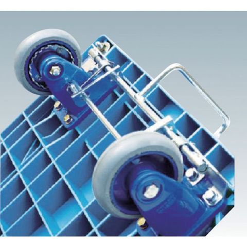 ・均等荷重(kg):300・騒音値(dB):35・色:ブルー・長さ(mm):940・幅(mm):600・高さ(mm):215・ハンドル高さ(mm):905・キャスター径(mm):130・取替キャスター(自在):CAS-130S-J・取替キャスター(固定):CAS-130SGL-K・キャスター仕様:静音ゴムキャスター
