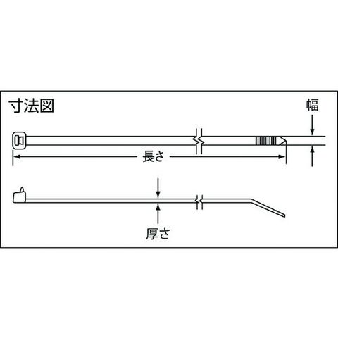 ・色:黒・幅(mm):2.5・長さ(mm):99・厚さ(mm):1.1・最大結束径(mm):22・引張強度(N):80・最小結束径(mm):1.6