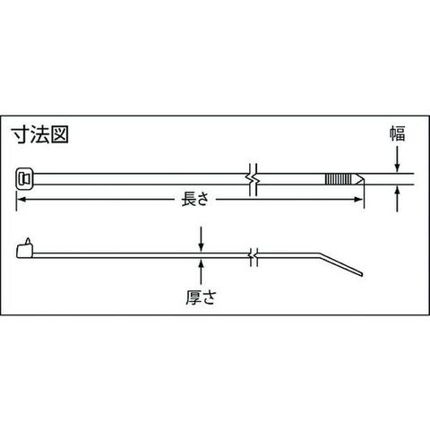・色:黒・幅(mm):4.8・長さ(mm):188・厚さ(mm):1.3・最大結束径(mm):48・引張強度(N):222・最小結束径(mm):1.6