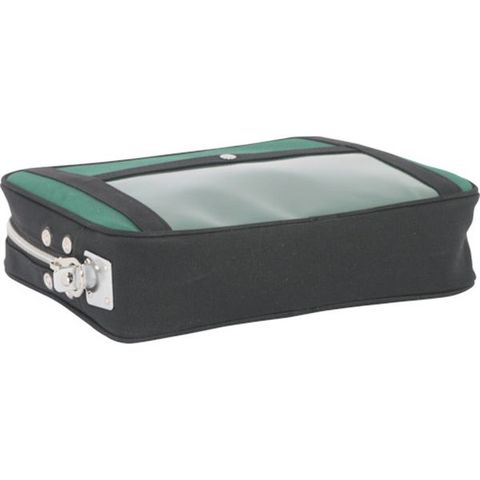 ・擦り切れに強く、耐久性に優れた帆布生地を使用したポーチです。・南京錠で施錠可能な金具の付いたタイプです。・片面に宅配伝票用透明ポケットが付いているので梱包無しでそのまま配送することができます。・A4用紙サイズまで入れられる大型ポーチです。