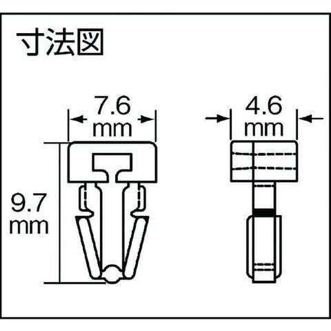 ・色:ナチュラル・縦(mm):9.7・横(mm):7.6・高さ(mm):4.6・使用結束バンド幅(mm):2.3~4.8・最大結束径(mm):使用結束バンドによる・穴径(mm):φ6.4・固定方法:押し込み