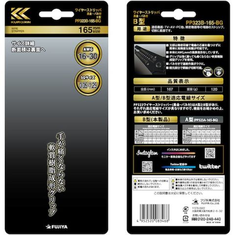 PP323B165BG フジ矢(株) フジ矢 ワイヤーストリッパB型(黒金)