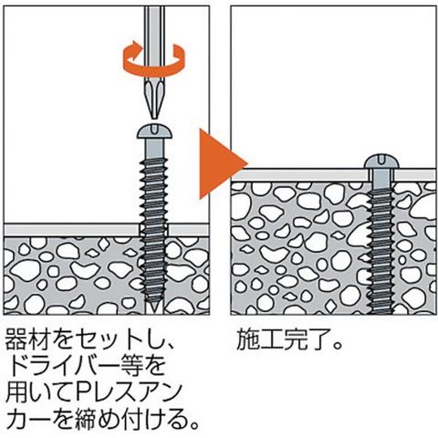 ・呼び径d(mm):4・下穴径(mm):3.4・埋込深さ(mm):22・引張最大荷重(kN):1.7・穿孔深さ(mm):35-t・長さ(mm):25・適合ドライバー:プラスNo.2