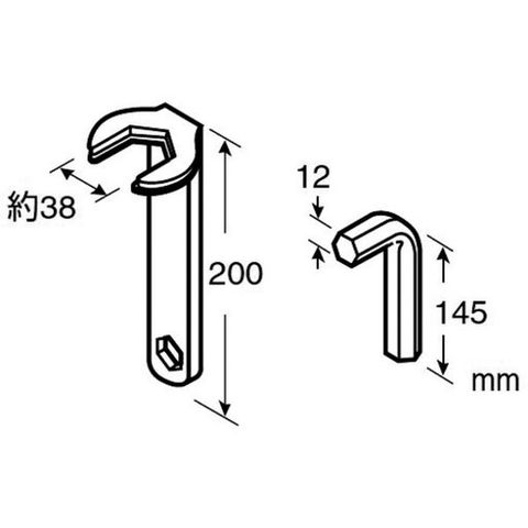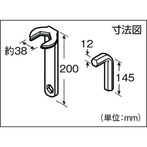 ・適合寸法(mm):38・全長(mm):200・セット内容:六角スパナ(対辺12mm)