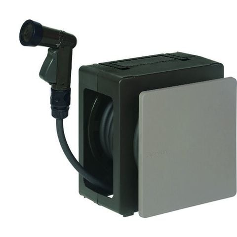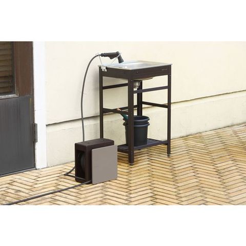 ・ブラウン・ベージュ色で外観にマッチするカラーリングです。・9mmホースを使用している為、一般的なコンパクトホースリール(ホース内径7.5mm)に比べ、水量が多いので散水時間を短縮できます。・補助ホースは取り外し、パネル内側に隠すことができるので、建物・お庭の外観を損ないません。・下巻きでホースを巻き取るタイプなので立ったままでも巻き取りが簡単です。・手持ち・据置どちらでも使用可能です。・ホースは表面がさらさらで取り回し簡単な「さらさらホース」を採用しています。・ホースは表面がさらさらで取り回しが簡単なさらさらホースを採用しています。