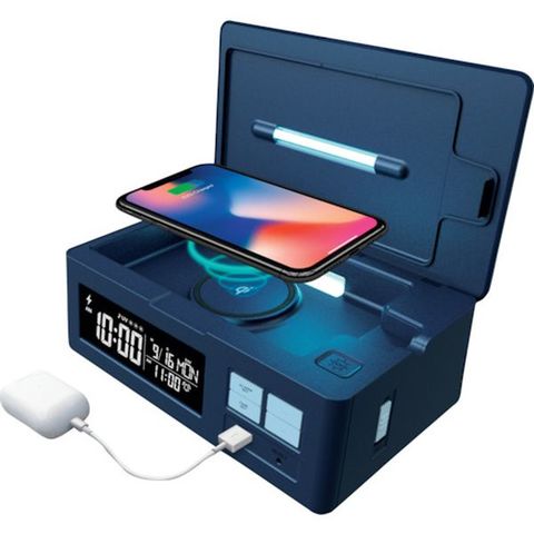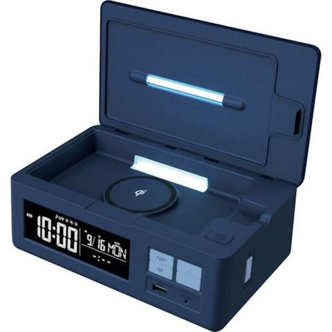 ・電源:ACアダプター・USB充電・ワイヤレス充電・クオーツ時計・アラーム、スヌーズ機能・12/24時間表示・液晶明るさ切替・UV除菌終了アラーム(オン/オフ切替可能)・UV除菌、カウントダウン機能