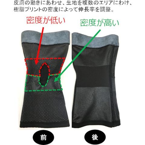 ・3D動態解析技術に基づいた樹脂プリントレイアウト構造でひざの動きに追随し、ズレにくいサポーターです。・薄さ約0.6mmなのにしっかり圧迫固定します。