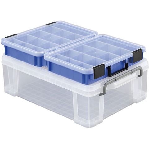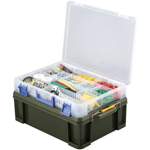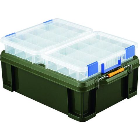 ・用途に合わせて移動できる仕切り付きです。・細かいネジや部品などが取り出しやすい底部角のカーブ形状です。・移動、持ち運びに便利なハンドル付きです。・アステージ製品#22、#45サイズのフタ付きコンテナ、「パーツストッカーPS-500」の上に2個並べて積み重ねできます。・DIY工具や釣具など用途に合わせ、小物や部品をスッキリと整理できる収納ケースです。