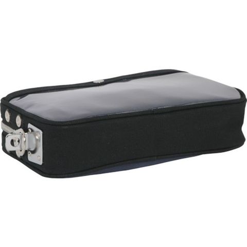 ・擦り切れに強く、耐久性に優れた帆布生地を使用したポーチです。・南京錠で施錠可能な金具の付いたタイプです。・片面に宅配伝票用透明ポケットが付いているので梱包無しでそのまま配送することができます。・A4用紙サイズまで入れられる大型ポーチです。