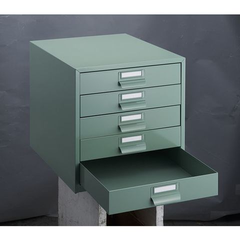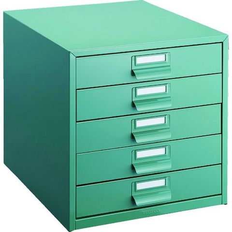 ・間口(mm):333・奥行(mm):410・高さ(mm):348・最大積載量(kg/台):25・色:グリーン・引出し:5段・引出し色:グリーン・均等積載量(kg/段):5・引出し内プラボックス無し・引出し内寸間口×奥行×深さ(mm):301×403×59