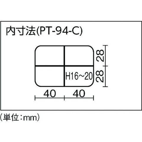 ・色:クリア・外形寸法(mm)間口:90・外形寸法(mm)奥行:67・外形寸法(mm)高さ:23・有効内寸(mm)間口:80・有効内寸(mm)奥行:56・有効内寸(mm)高さ:16・コマ数:4